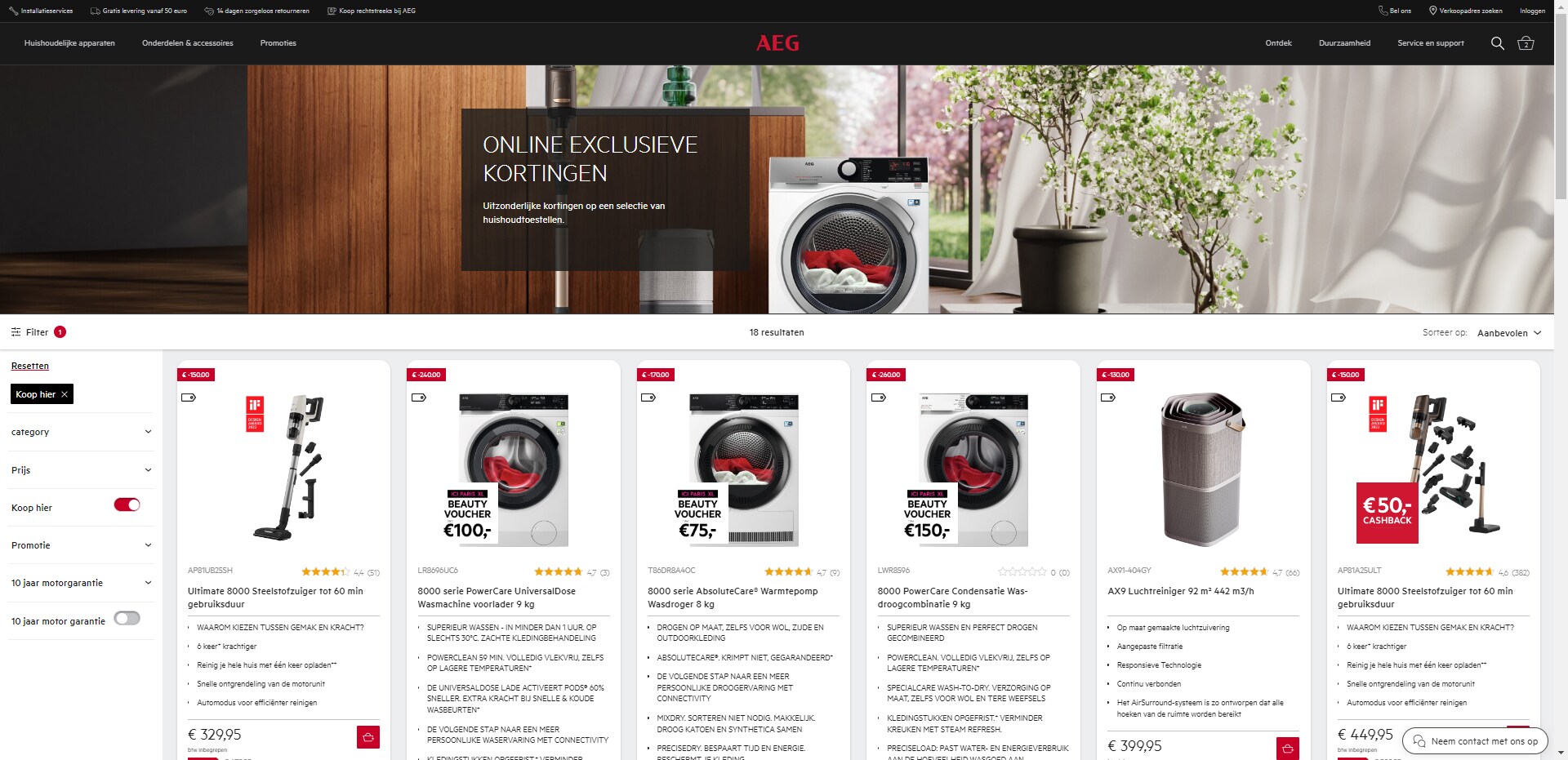 Helaas is er momenteel geen promotie op AEG wasmachines, droogkasten en was-droogcombinaties.