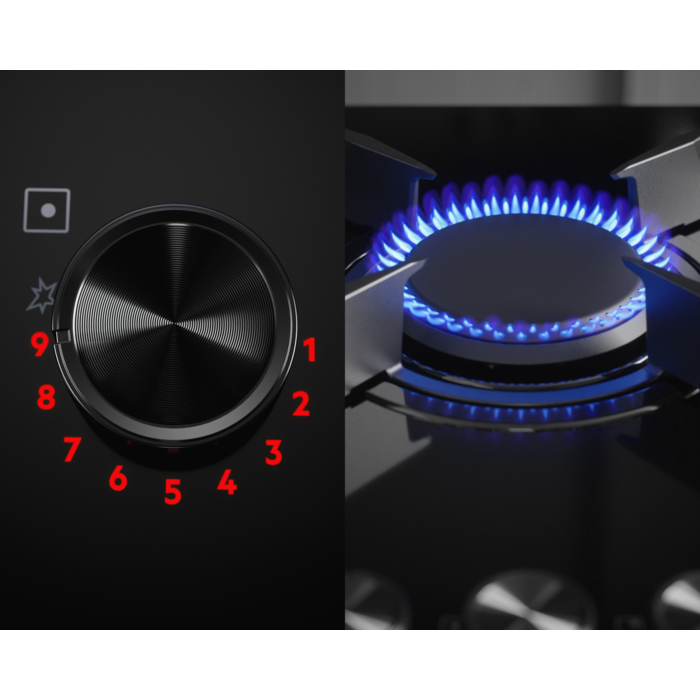 Les LED FlameLight affichent clairement les niveaux de puissance de sortie de gaz de 1 à 9, pour que vous puissiez contrôler en toute confiance l’intensité de la flamme à chaque fois que vous cuisinez. Les LED brillantes vous permettent également de savoir si un brûleur est allumé ou éteint.