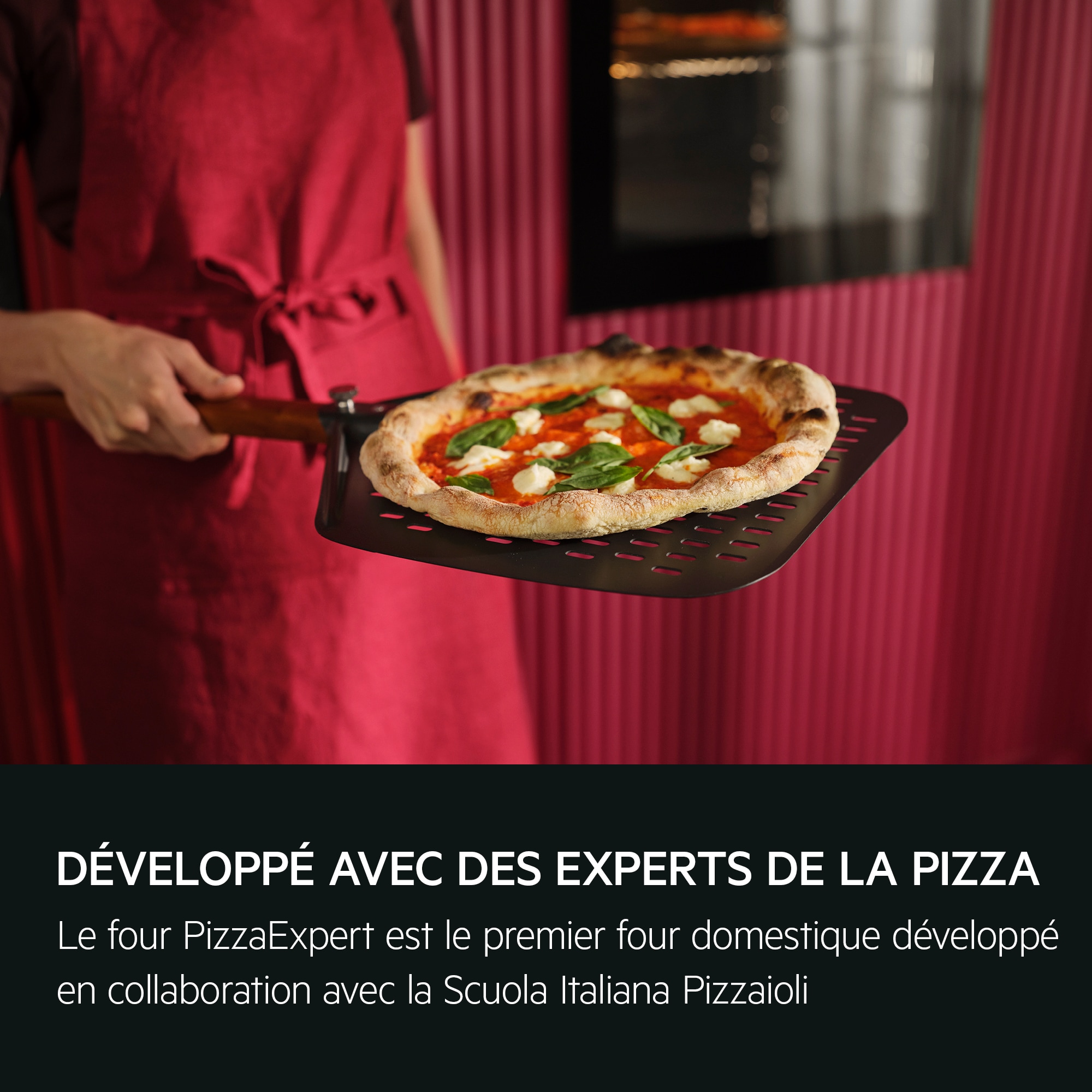 Vous pouvez désormais impressionner vos amis et votre famille avec des pizzas dignes d'un restaurant, cuites dans le seul four domestique approuvé par la Scuola Italiana Pizzaioli. À 340 °C, il faut seulement 2 minutes et demi* au four PizzaExpert pour rendre vos soirées pizzas inoubliables.