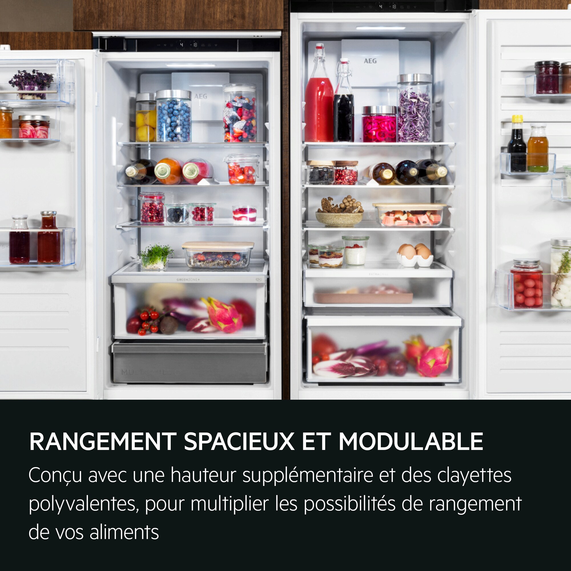 Les combinés frigo/congélateur AEG EcoLine sont nos modèles les plus économes en énergie. Ils sont également dotés d'un revêtement intérieur unique en plastique recyclé et l'interface utilisateur vous guide vers des réglages plus économes en énergie tout en réduisant les déchets alimentaires.*