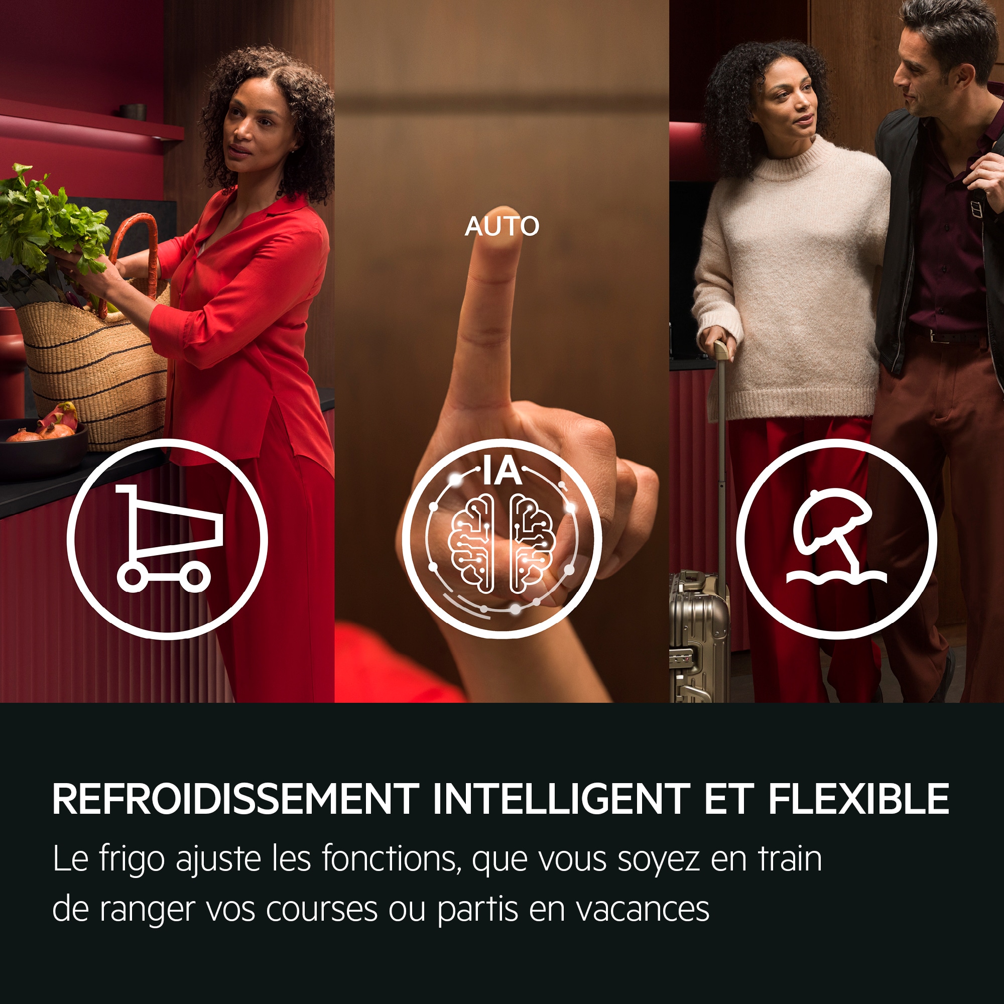 *Testé sur les modèles 1780 CB Multichill et 1780 CB Twintech Nofrost, comparant la consommation d'énergie à 25 °C avec le mode Auto Vacation de l'AI CoolAssist® activé par rapport aux réglages d'usine par défaut avec AI CoolAssist® désactivé. Les économies d'énergie réelles peuvent varier en fonction de la température ambiante et des habitudes d'utilisation.