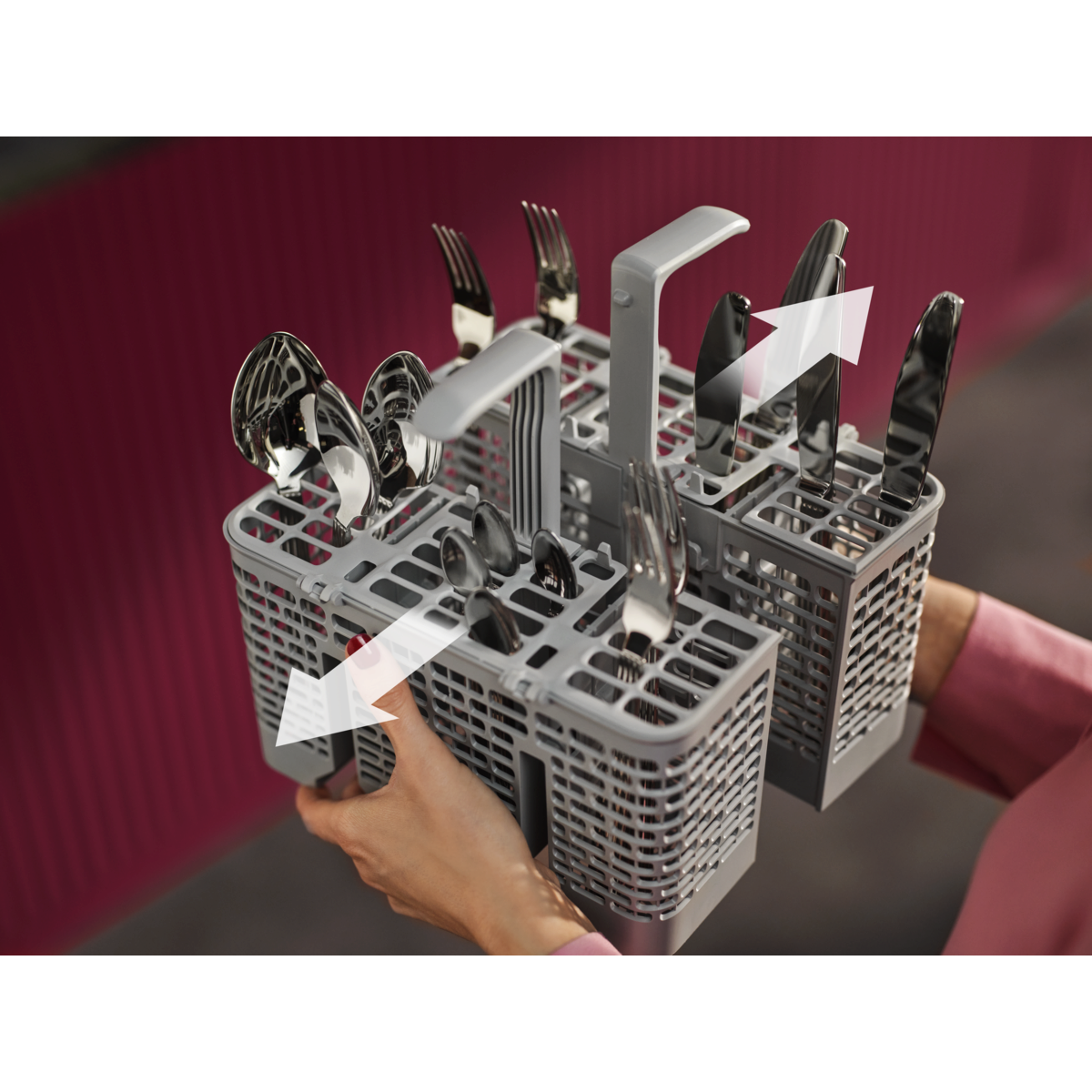 La série 9000 : paniers multifonctionnels et coulissants, tiroir à couverts. Supports pour caler les verres et les plateaux. Nettoyage puissant pour éliminer les résidus alimentaires incrustés ou séchés. Système d'eau à haute efficacité utilisant seulement 8,4 litres d'eau.