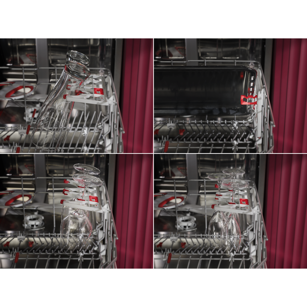 Support flexible 4-en-1 pour verres à pied/hauts, et pour plaques de cuisson.