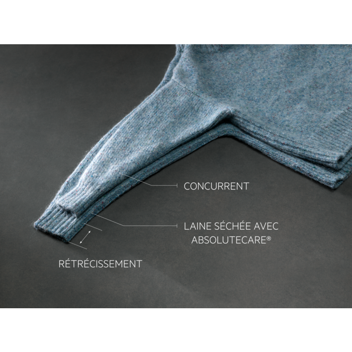 Le sèche-linge 8000 AbsoluteCare® utilise la technologie de pompe à chaleur. Il contrôle avec précision le mouvement et la température du tambour. La laine ne rétrécit pas et la soie garde sa forme. AbsoluteCare® rétablit l’imperméabilité des vêtements d’extérieur et est certifié Woolmark Blue.