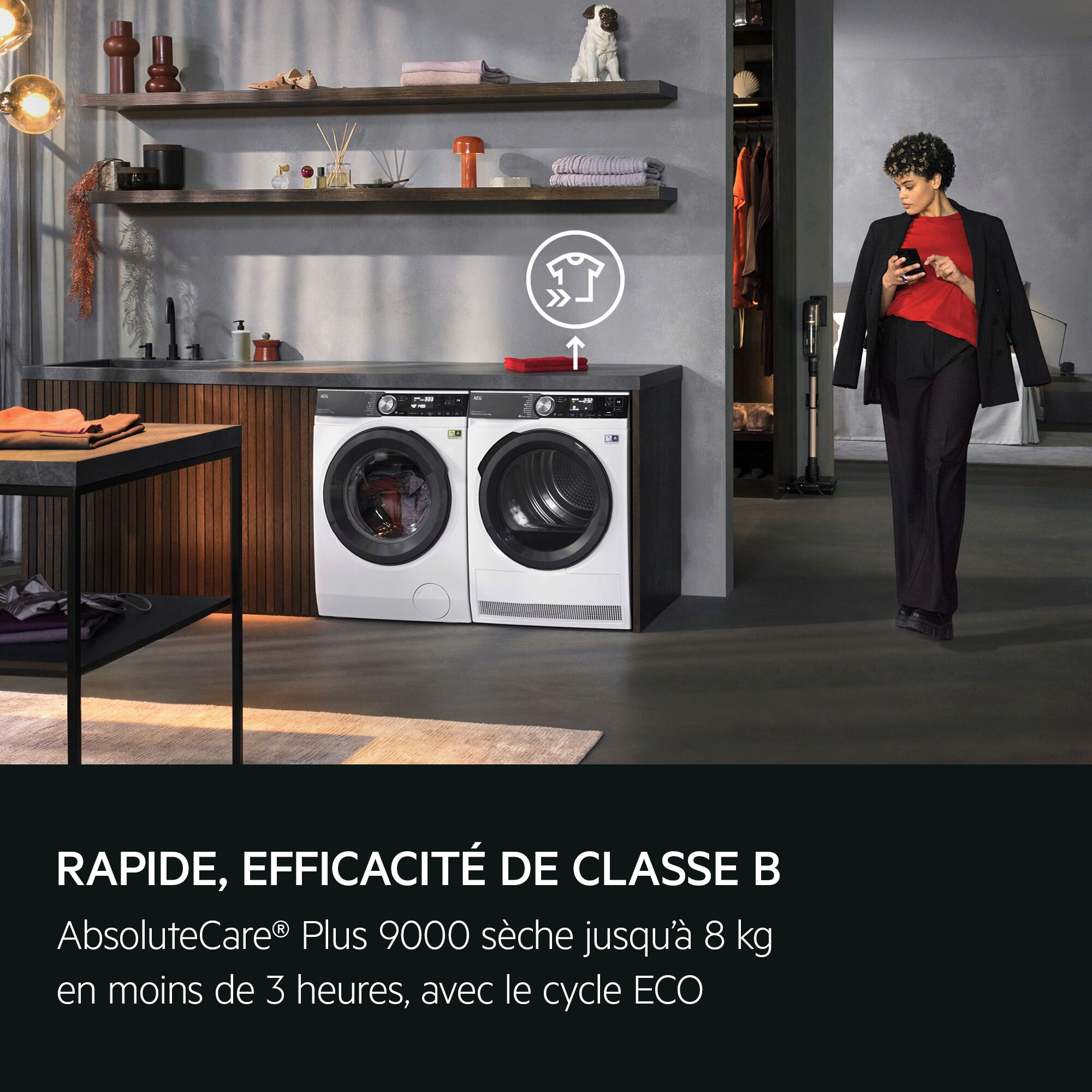 Les sèche-linge AEG EcoLine sont sélectionnés car ils sont dotés de la classe énergétique la plus élevée et des fonctionnalités les plus avancées, pour préserver la longévité des vêtements.