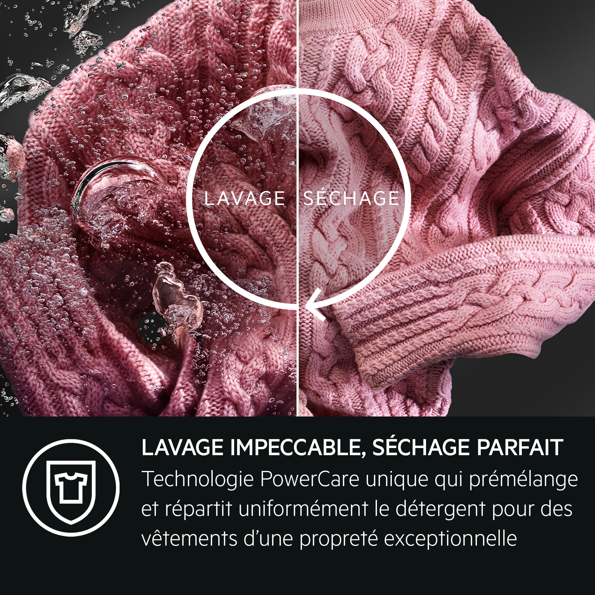 Le lave-linge 8000 PowerCare utilise une technologie de prémélange pour activer la puissance du détergent, offrant ainsi des résultats de lavage supérieurs, même à 30°C, et en moins d’une heure. Les articles sont séchés mais pas trop, ce qui leur permet de conserver leur aspect et leur toucher.