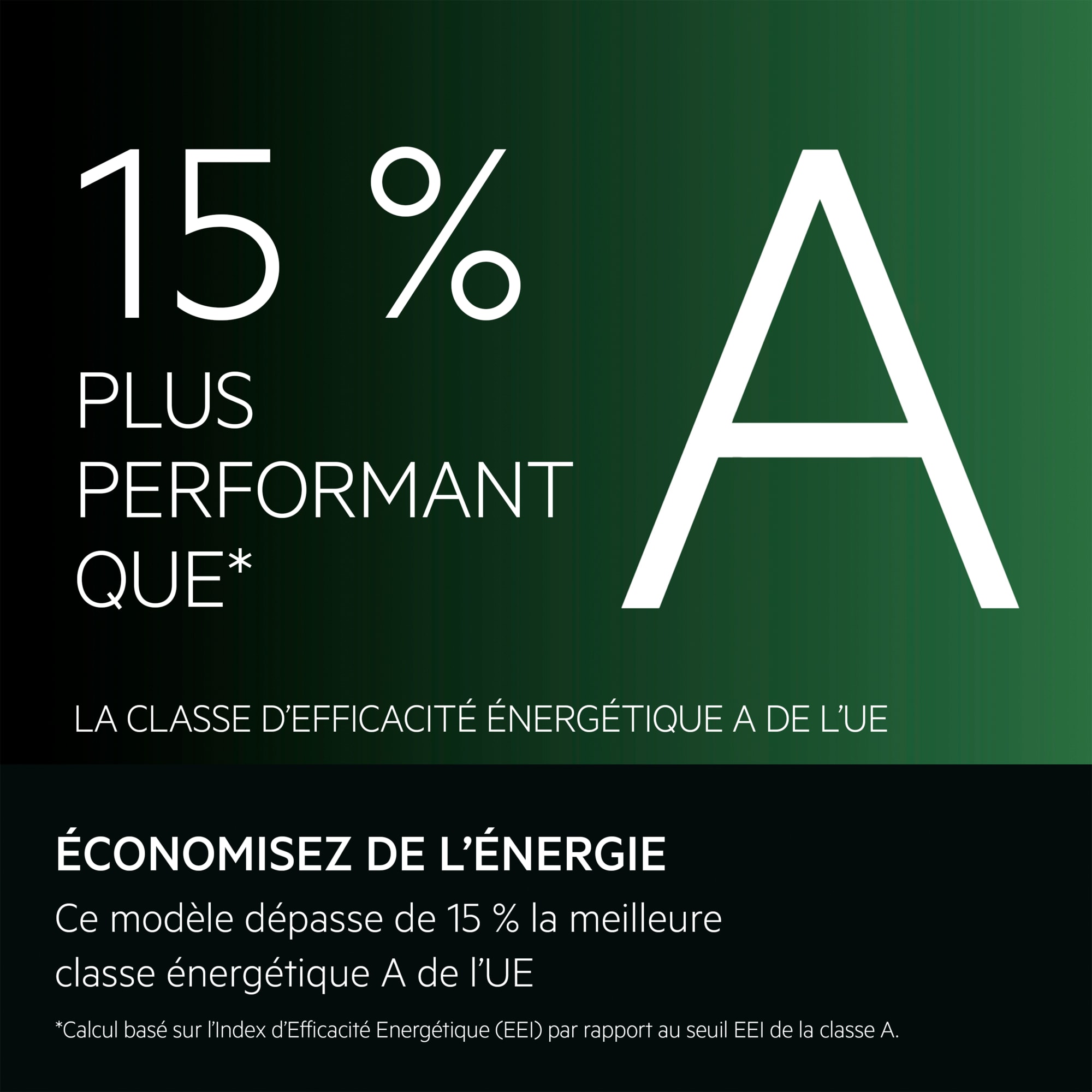 *Calcul basé sur l'indice d'efficacité energétique (EEI) indiqué comparé au seuil EEI de la classe A
