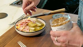 Garnissez-les de fromage et de jambon et finissez avec du sarrasin croquant