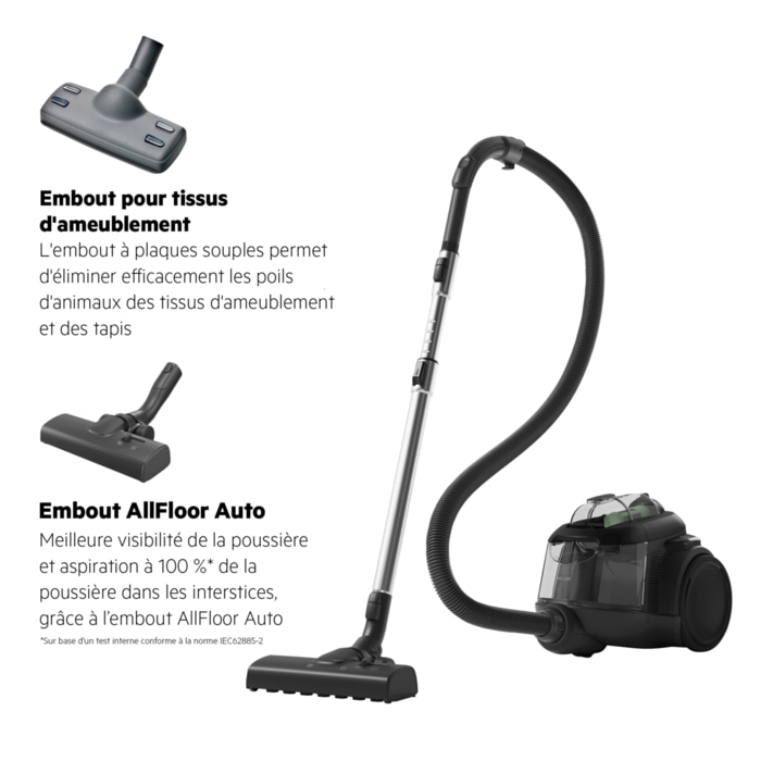 L'aspirateur sans sac ergonomique CLEAN 6000 allie performances et élimination de la poussière sans aucune trace. Il offre des performances sans compromis et est équipé d'un filtre Allergy Plus lavable, pour capturer les particules fines.