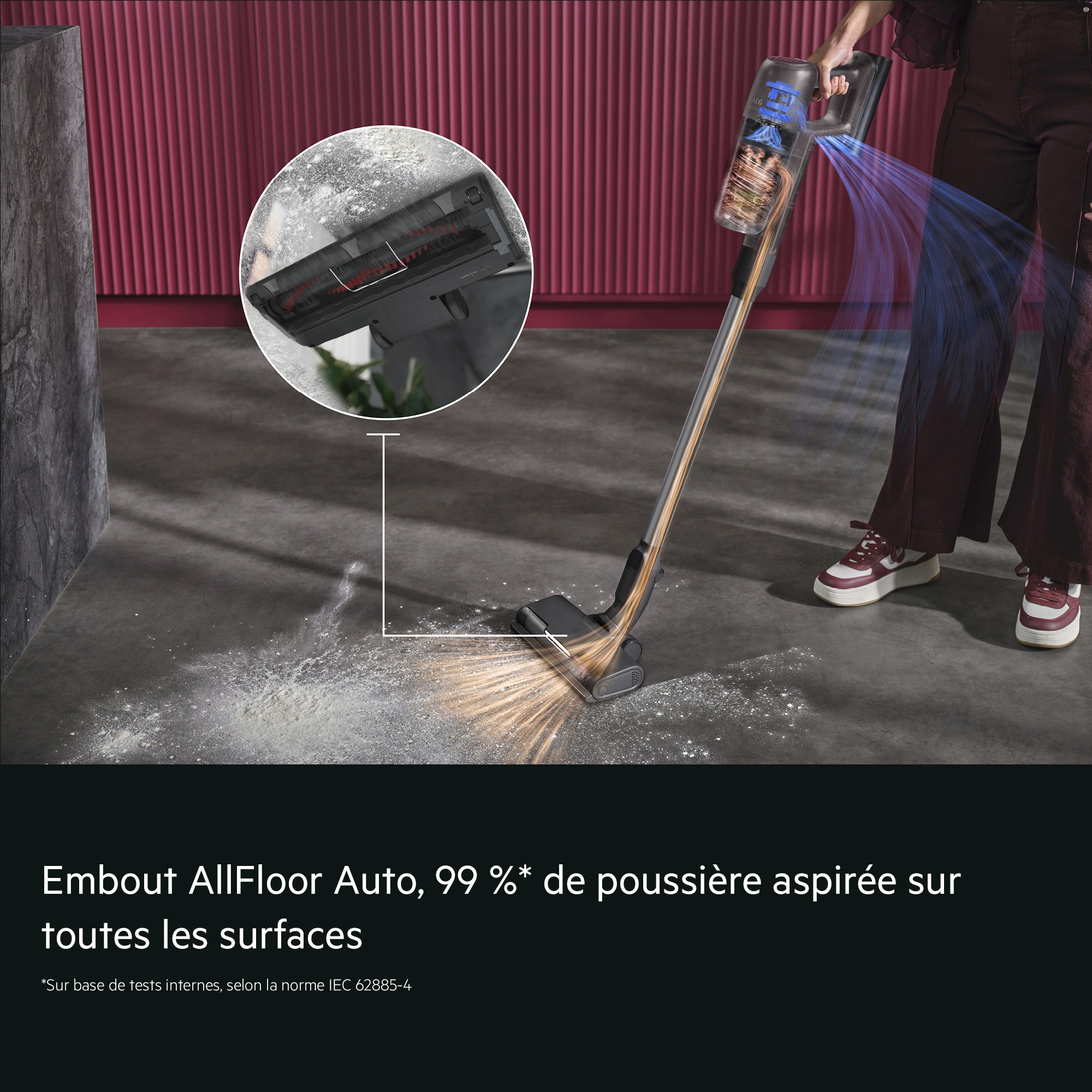 *Par rapport à un moteur à cyclone unique utilisé dans les aspirateurs sans fil. **Sur base de tests internes réalisés conformément à la norme CEI 62885-4.