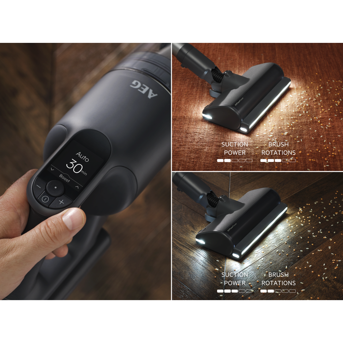 Perfection longue durée : l'AEG 9000 est le seul aspirateur sans fil combinant une autonomie inégalée à une capacité de ramassage de la poussière pouvant atteindre 100 %*. Il est équipé d'un moteur de précision doté de la technologie Inverter.
