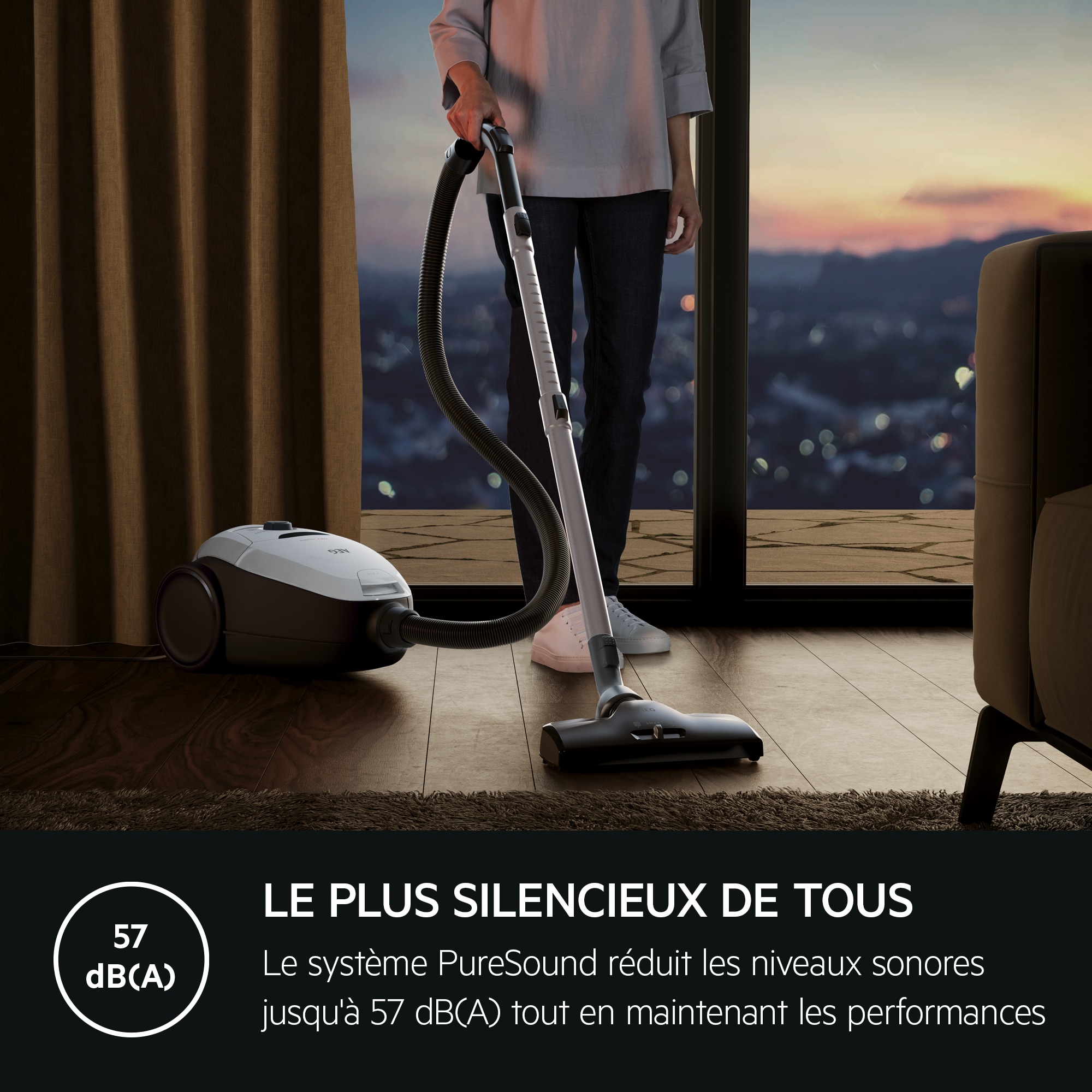 Système PureSound. Incroyablement silencieux sur tous les sols, avec un niveau sonore aussi bas que 57 dB(A)*
