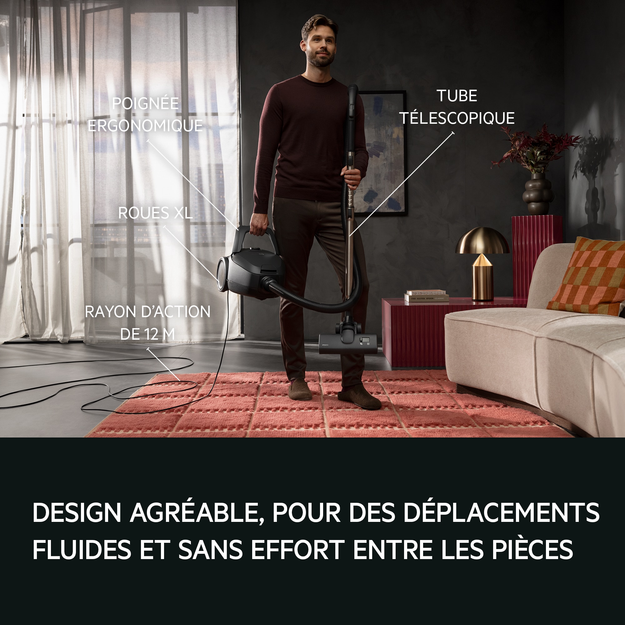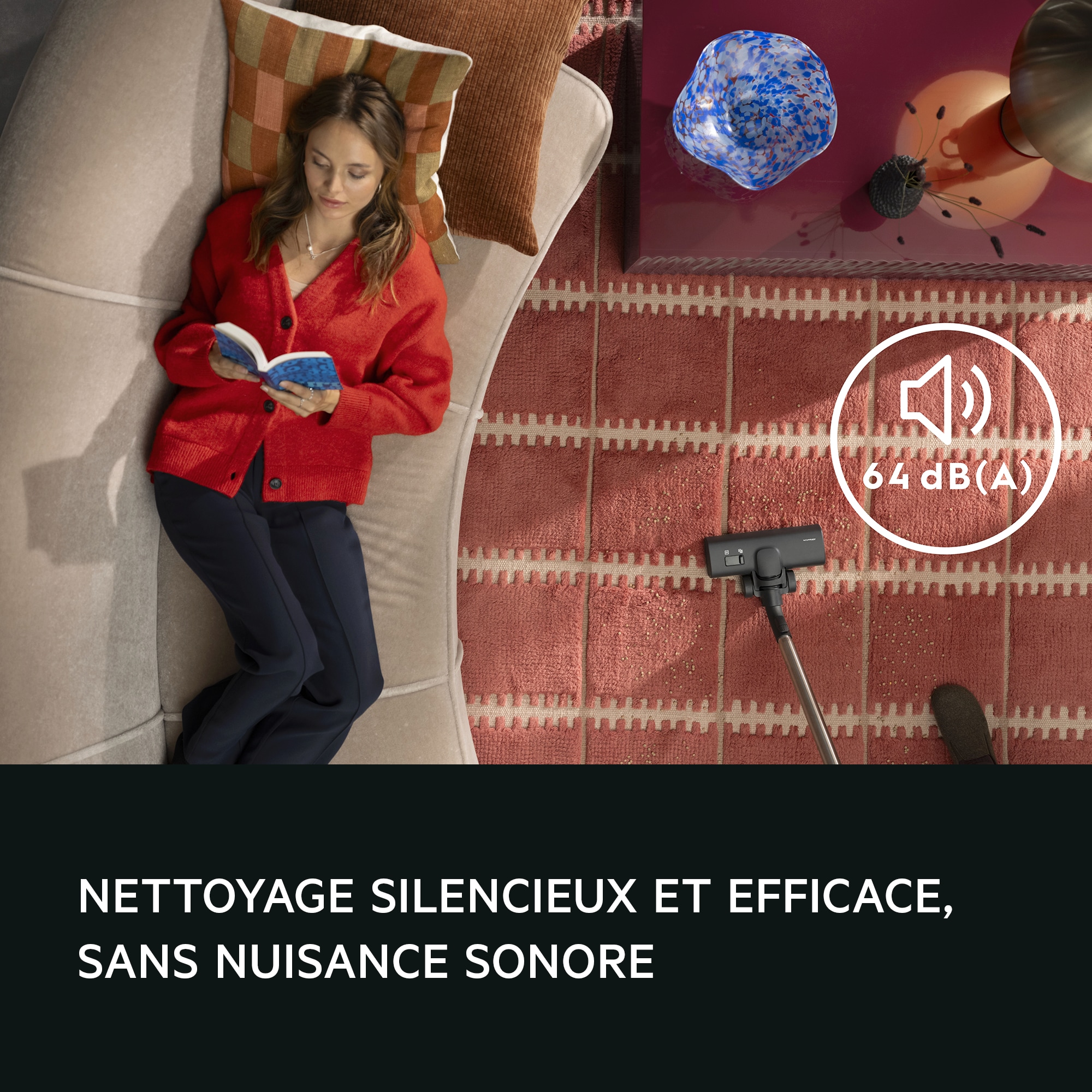 Le VX8.3 combine un système de circulation d'air hautement efficace avec un moteur puissant et la brosse AllFloor Auto, garantissant ainsi une puissance d'aspiration exceptionnelle. Conçu pour ceux qui recherchent un appareil silencieux et fiable, il permet un nettoyage sans effort.
