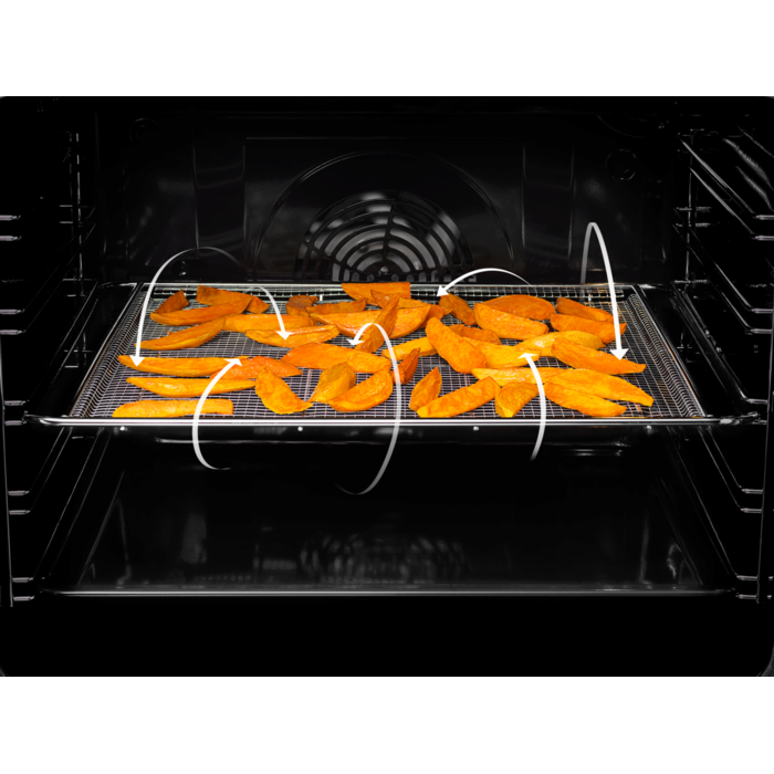 Geniet van knapperige, gelijkmatig gegaarde gerechten, zoals frietjes, groenten en kippenvleugels, met weinig tot geen olie met de AirFry-ovenmand. Het speciaal ontworpen raster zorgt voor meer luchtcirculatie en een continue luchtstroom. Het is niet nodig om het eten te keren.