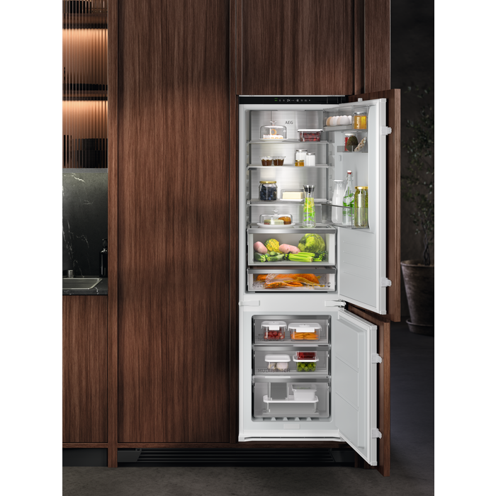 De AEG EcoLine koel-vriescombinaties zijn onze meest energiezuinige modellen. Ze hebben een unieke binnenbekleding van gerecycleerd kunststof en een bedieningspaneel dat niet alleen leidt naar energiezuinigere instellingen, maar ook helpt voedselverspilling te verminderen.*