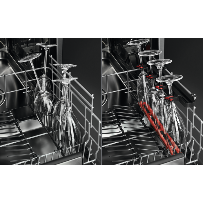 De 7000 GlassCare-vaatwasser biedt speciale zorg voor glazen spullen tijdens het reinigingsproces. Het unieke glazenrek in de onderste korf is een veilige plek voor zelfs je grootste glazen met voet.