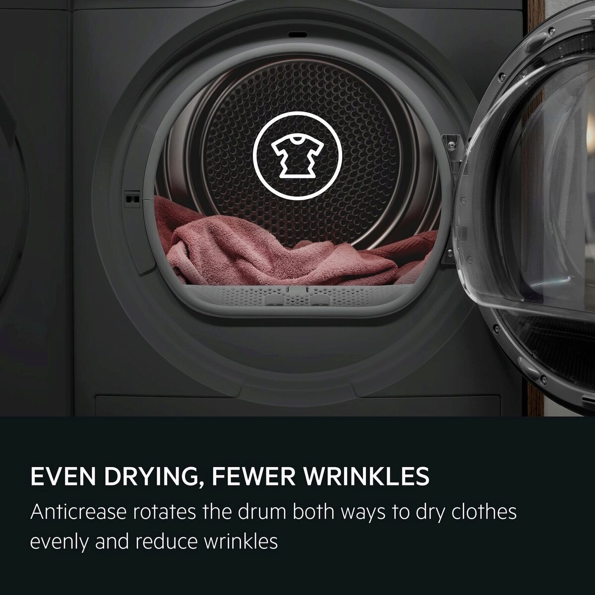 Antikreuk-technologie droogt je kleding gelijkmatig, voor minder kreuken
