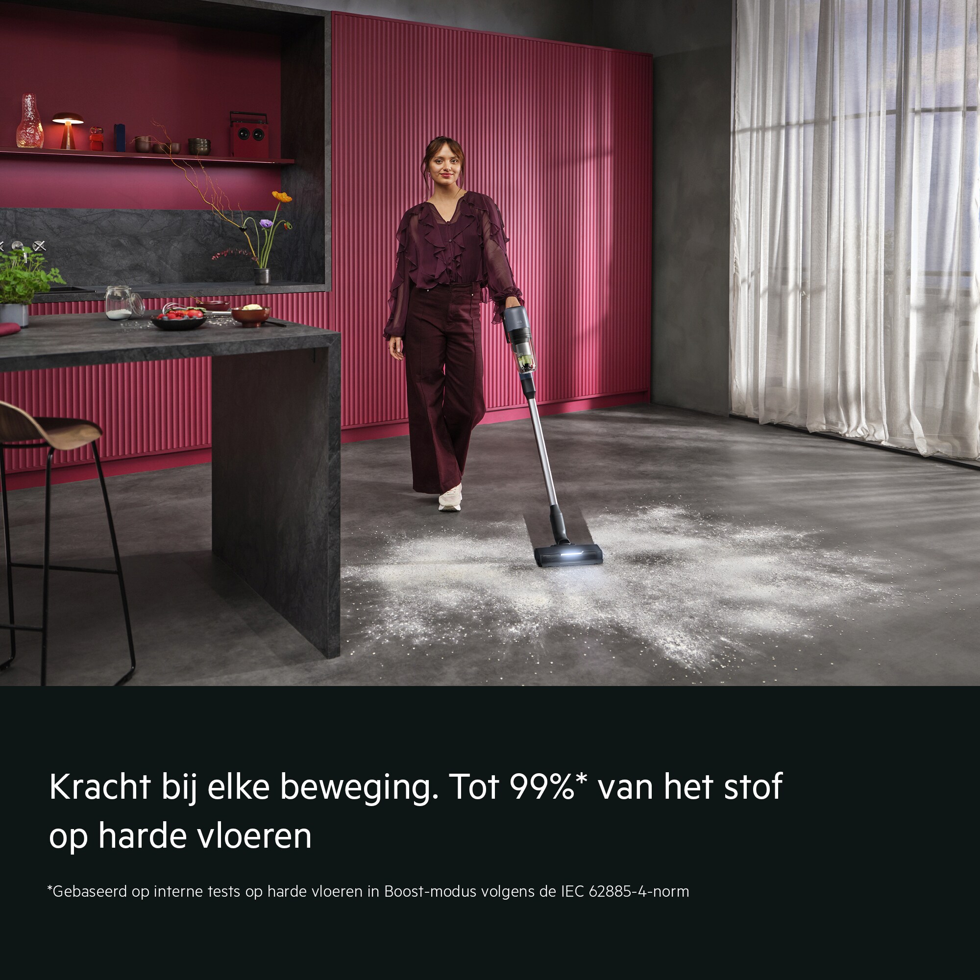 *In vergelijking met een enkelcycloonmotor in snoerloze stofzuigers. **Gebaseerd op interne tests volgens IEC 62885-4