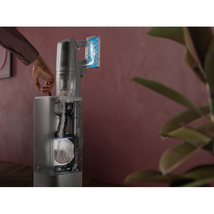 Ervaar de 8000 serie draadloze stofzuiger, uitgerust met zijn eigen automatische leegstation. Het ultieme schoonmaakgemak met krachtige prestaties, moeiteloos onderhoud en een gestroomlijnde opbergoplossing.