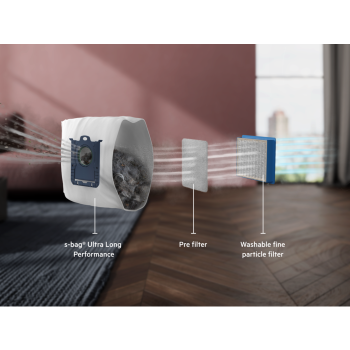 De 8000 stofzuiger met zak heeft de beste reinigingsprestaties* vergeleken met andere stofzuigers in dezelfde categorie**. Het geoptimaliseerde luchtstroomsysteem zorgt voor een sterke zuigkracht om fijn stof en vuil effectief van tapijten en harde vloeren te verwijderen