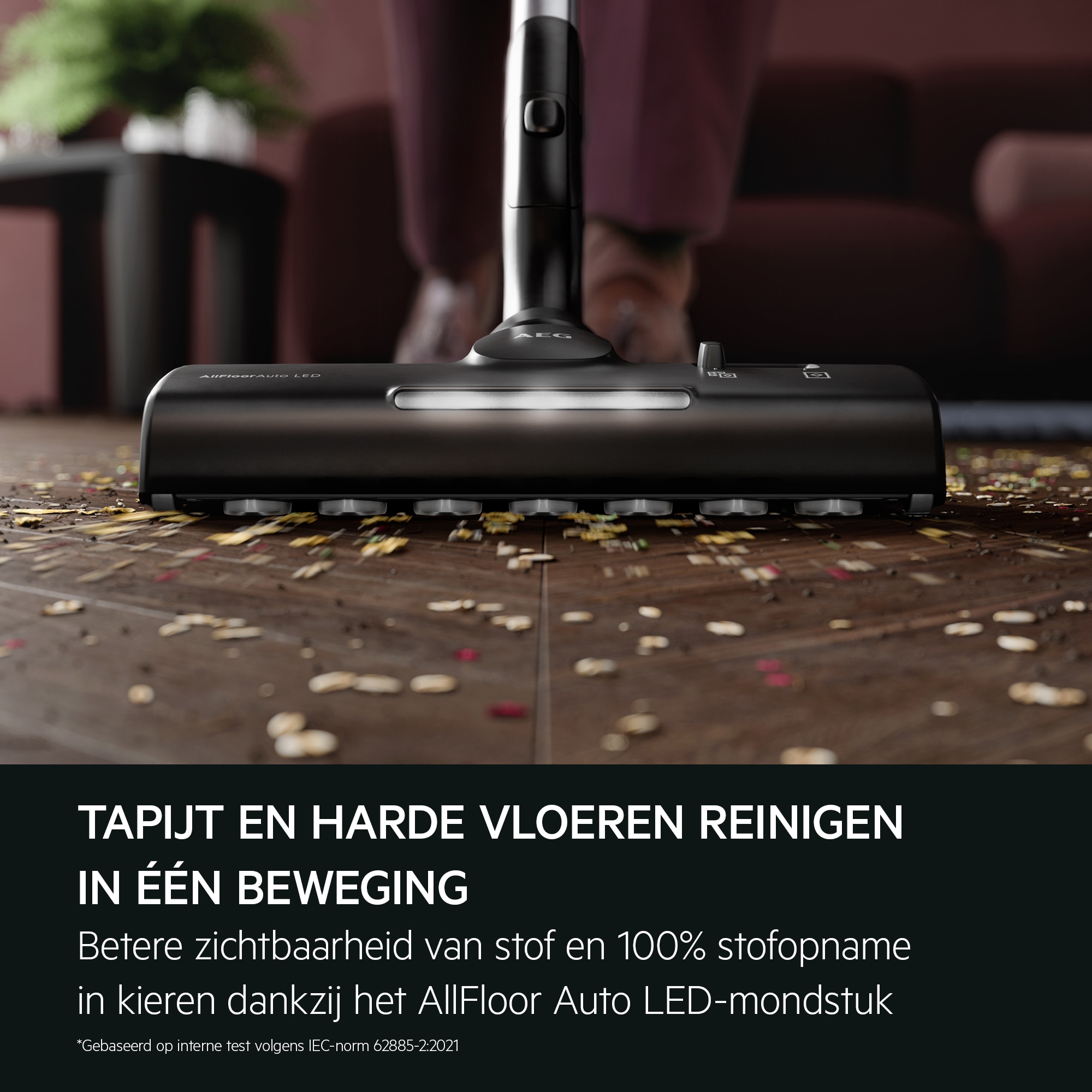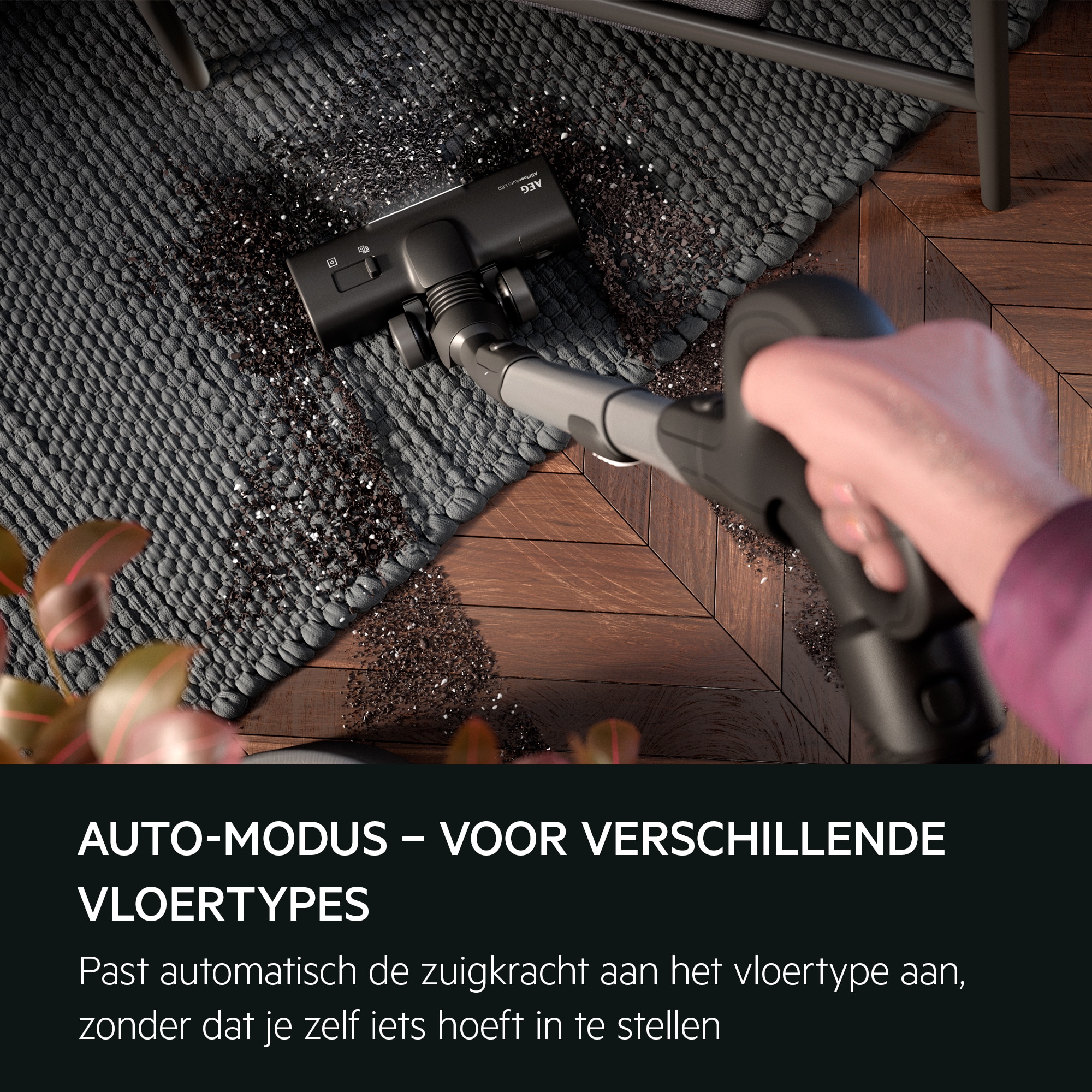 *Gebaseerd op interne tests volgens de norm IEC 62885-2, waarbij het energieverbruik bij gebruik van de maximum modus wordt vergeleken met de Auto-modus bij het reinigen van tapijt.
