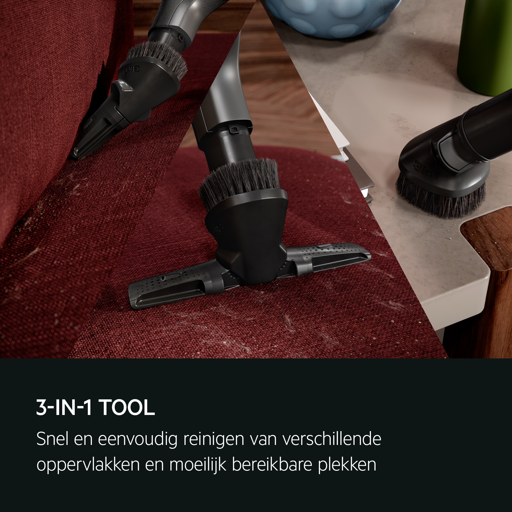 Geniet van je huisdieren zonder je zorgen te maken over huisdierharen. Het Pet XL-mondstuk is ontworpen om huisdierharen gemakkelijk te verwijderen, zowel op tapijten als vloerkleden. De door een turbine aangedreven borstels verwijderen effectief vezels en haar, waardoor je huis vlekkeloos blijft.