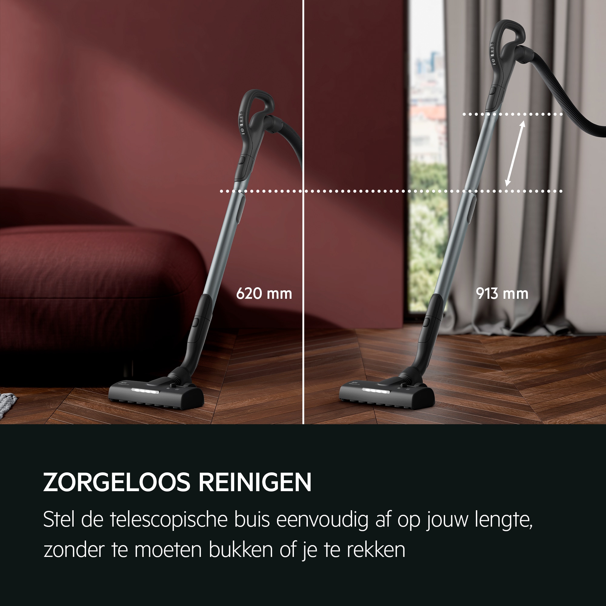 *Gebaseerd op interne testen volgens de norm IEC 62885-2, waarbij het stroomverbruik bij gebruik van de Max-modus wordt vergeleken met de Auto-modus bij het reinigen van tapijt. **Voorwaarden zijn van toepassing. Zie www.aeg.be voor meer informatie. ***Extra accessoires niet inbegrepen.