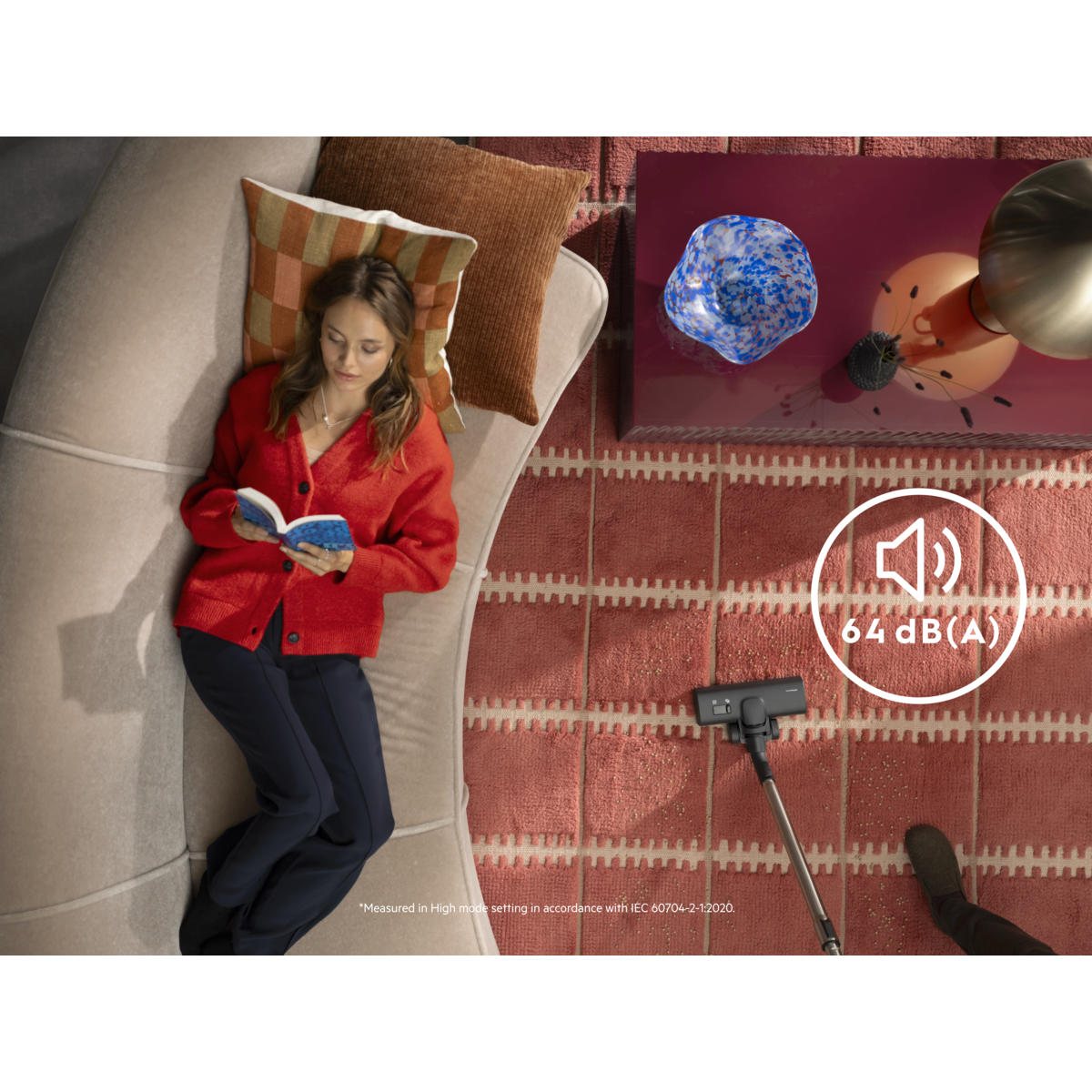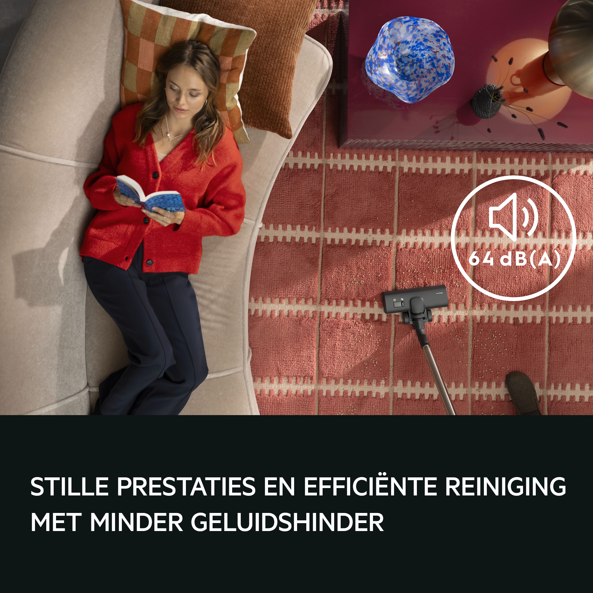 De VX8.3 combineert een zeer efficiënt luchtstroomsysteem met een krachtige motor en de AllFloor Auto-zuigmond en levert sterke zuigprestaties. Gemaakt voor wie waarde hecht aan een stille werking én betrouwbare reiniging, voor een moeiteloze ervaring.
